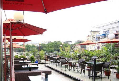 Từ đường Thanh Niên đi tắt qua vườn hoa Lý Tự Trọng vào đường ven Hồ, phía sau trường Chu Văn An, bạn sẽ bắt gặp một quán với ton màu đỏ nổi bật với những chú thiên nga trắng vây quanh. Bạn đã biết đó là quán nào chưa? Đó chính là Eureka Coffee & Fastfood shop.