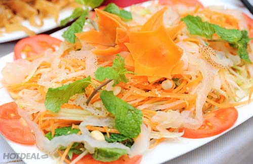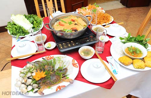 Ngoài các món ăn mang đậm chất hương vị đại dương và đặc sản đồng quê như: cua, ghẹ, các loại cá, bề bề, tôm sú, tôm hùm, ngao, ngán, sò, tu hài, hàu, mực tươi, mực trứng, cá Lăng Sông Đà… thì một trong các loại hải sản đặc trưng mang tính biểu tượng của nhà hàng đó là các món chả Mực giã tay và Rắn biển (còn gọi là con Đẻn – được chế biến thành 7 món, có các tính năng bổ dưỡng và tăng cường sinh lực cho đàn ông) được chế biến theo phương pháp gia truyền và đảm bảo tuân theo các tiêu chuẩn khắt khe về dược lý, y học.