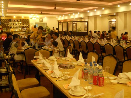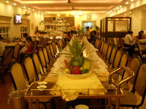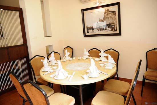 Đi tiếp vào phía trong Nhà hàng, phòng tiệc sang trọng có sức chứa lên tới hơn 100 thực khách cùng ánh sáng và âm thanh êm dịu sẽ mang đến cho bạn những bữa tiệc vui vẻ mà ấm áp.