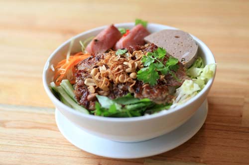Một tô bún thịt nướng đậm phong vị Đà Nẵng gồm có: bún tươi, rau sống, thịt nướng, đậu phộng, hành phi… vô cùng hấp dẫn. Thưởng thức món bún thịt nướng tại Ngon Như Bún, bạn sẽ cảm nhận được được từng miếng thịt bò ướp xả và mè vừa đậm đà, vừa thơm lừng cùng vị bún mềm mại, vị bùi bùi của đậu phộng, hành phi và cả vị tươi nguyên, giòn giòn của rau sống. Chan đều sốt tương bần béo béo, thêm chút tương ớt “Anh Chi” với màu đỏ tự nhiên, cay vừa phải cùng nước mắm chua ngọt thật đúng chất ẩm thực Đà Nẵng.