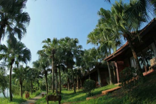 Những ngôi nhà nhỏ nằm trên triền đồi được xây dựng theo kiểu nhà gạch truyền thống cùng với trang thiết bị đạt tiêu chuẩn 5 sao. Tất cả nằm dưới hàng cọ xanh mát được thiết kế có thềm và mái hiên và hướng ra phía hồ để Quý khách có thể tận hưởng thoải mái ngắm nhìn hồ nước trong xanh và thơ mộng rộng 4 hecta.