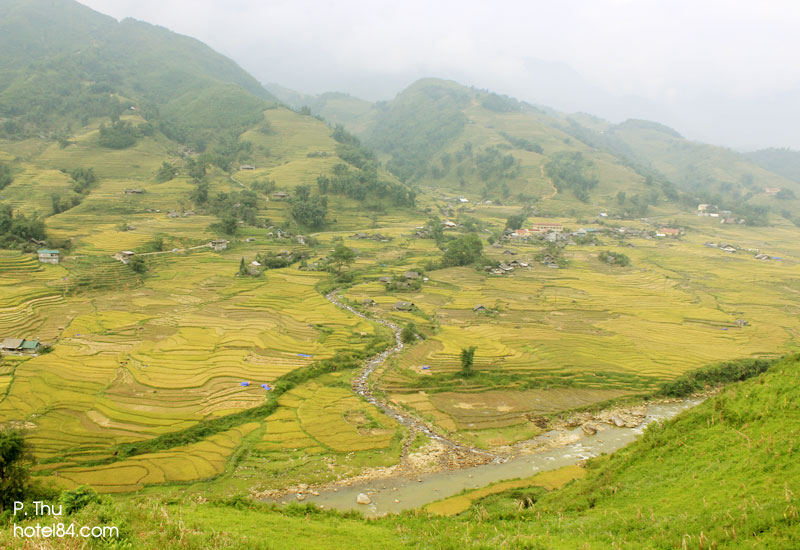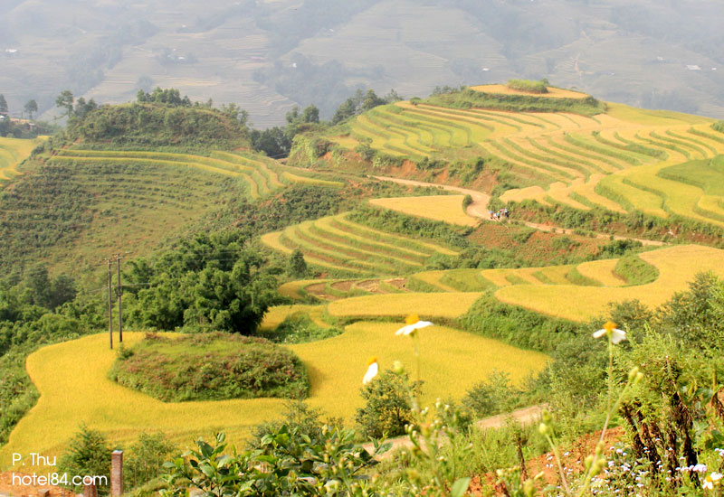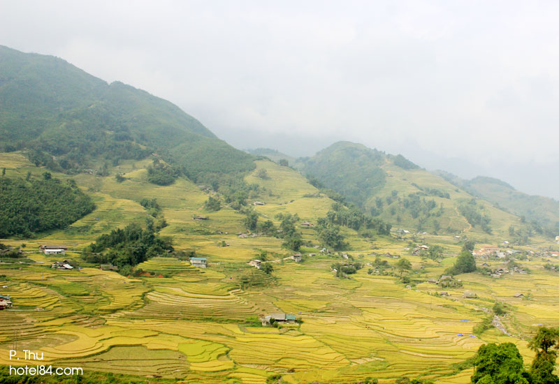 Du lịch Sapa mùa này đang chìm đắm sắc vàng quyến rũ trên từng thửa ruộng bậc thang mùa lúa chín, ruộng bậc thang Sapa là cơn sóng vàng bất tận chảy từ dãy Hoàng Liên Sơn hùng vĩ, tràn xuống các bản làng đẹp như tranh vẽ. Du lịch đến Sapa vào mùa lúa chín, bạn sẽ tận mắt ngắm nhìn những thửa ruộng bậc thang đẹp như mơ, được tạo ra bởi bàn tay tài hoa của đồng bào dân tộc miền núi. Sapa mùa thu nổi tiếng khắp cả nước bởi vẻ đẹp của ruộng bậc thang mỗi khi vào mùa lúa chín mang một vẻ đẹp và sức cuốn hút tuyệt vời. Dù mỗi mùa trong năm, Sa Pa đều mang nét đẹp riêng, nhưng với mùa thu, vùng đất Sa Pa ẩn chứa vẻ đẹp rất khác. Thu về trên Sa Pa mang theo làn khói sương mờ buổi sớm quấn quýt mãi trên những nếp nhà, nhuộm vàng thửa ruộng bậc thang.