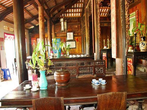Ngôi nhà này được khởi công vào năm 1901, đến năm 1903 thì hoàn thành và năm 1904 thì xong phần chạm khắc trang trí do nhóm 15 thợ từ làng Mỹ Xuyên - làng chạm khắc mộc nổi tiếng của Thừa Thiên - Huế thực hiện bằng chất liệu chủ yếu là các loại gỗ quý như cẩm lai, mun... Với diện tích 882m2, Nhà Trăm Cột tọa lạc trên một khu vườn rộng 4.044m2, chính diện quay về hướng Tây Bắc. Nhà làm bằng các loại gỗ cẩm lai, gõ đỏ, gõ mật; mái lợp ngói âm dương, nền nhà bằng đá tảng cao 0,9m, mặt nền lát gạch Tàu lục giác. Nhìn trên bình đồ, Nhà Trăm Cột có kiểu chữ “Quốc”, 3 gian, 2 chái.